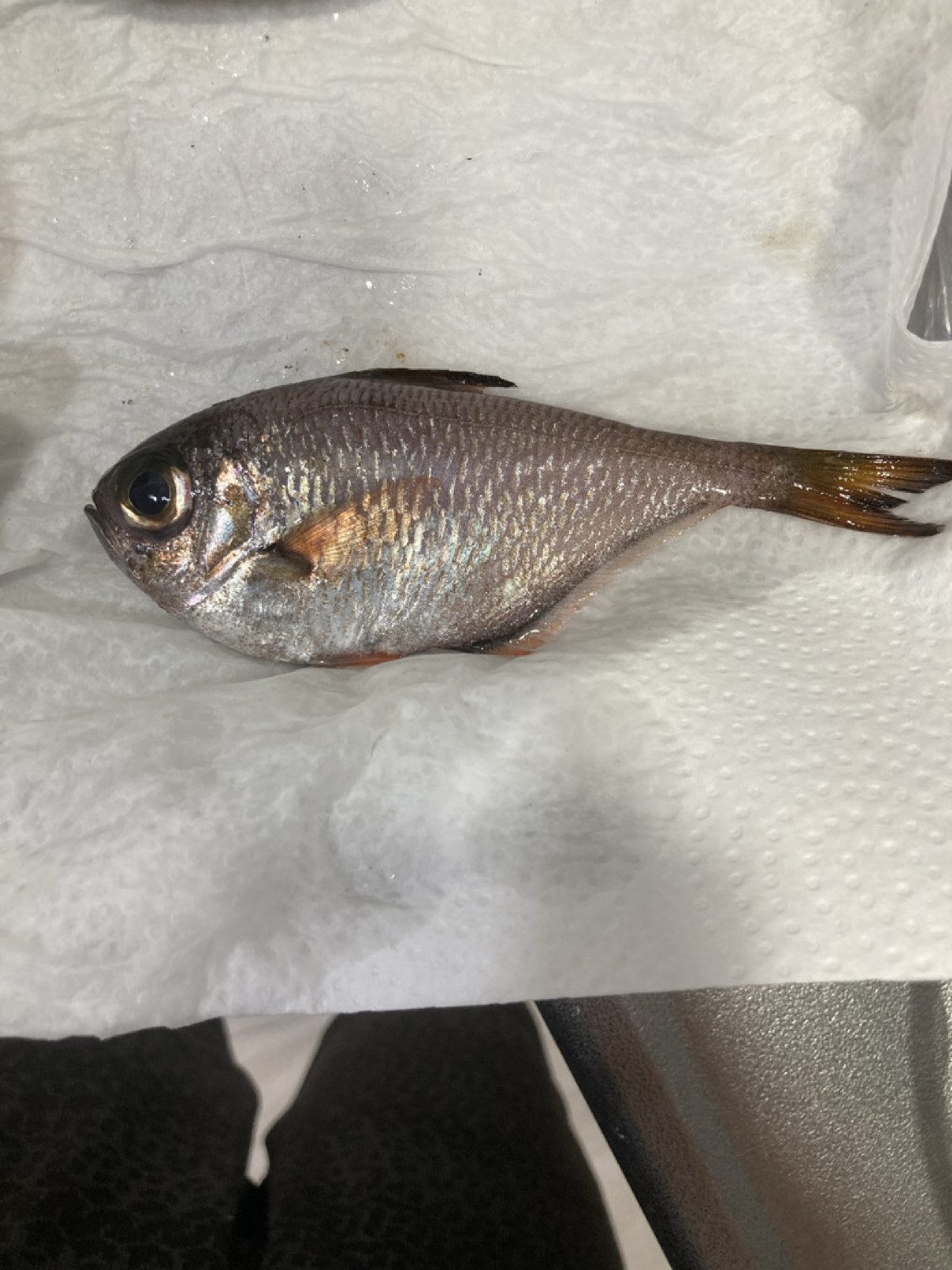未同定0462025-09-17 • 鹿児島県何という魚ですかね? 採集場所:谷山港 撮影日:2025-09-17回答taku2025-09-18ミエハタンポPempheris nyctereutes Jordan and Evermann, 1902ミナミハタンポかこちらのミエハタンポのどちらかだと思います。